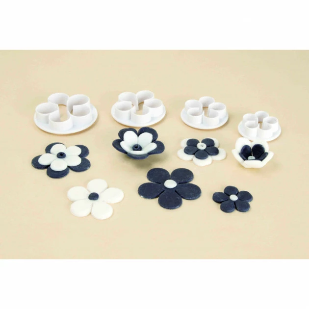 Découvrez le jeu de 4 emporte-pièces Florensuc. Ces emporte-pièces vous permettent de réaliser à l’aide de pâtes à sucre, de magnifiques marguerites avec facilité.