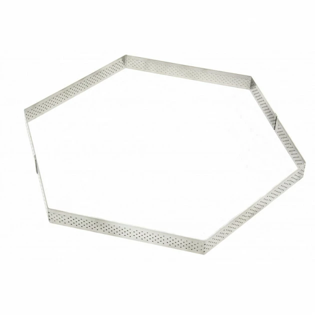 S’adressant aux professionnels comme aux particuliers, le cercle à tarte perforé hexagone De Buyer se décline en plusieurs tailles. Le modèle de 10 cm de diamètre est idéal pour réaliser un dessert individuel.