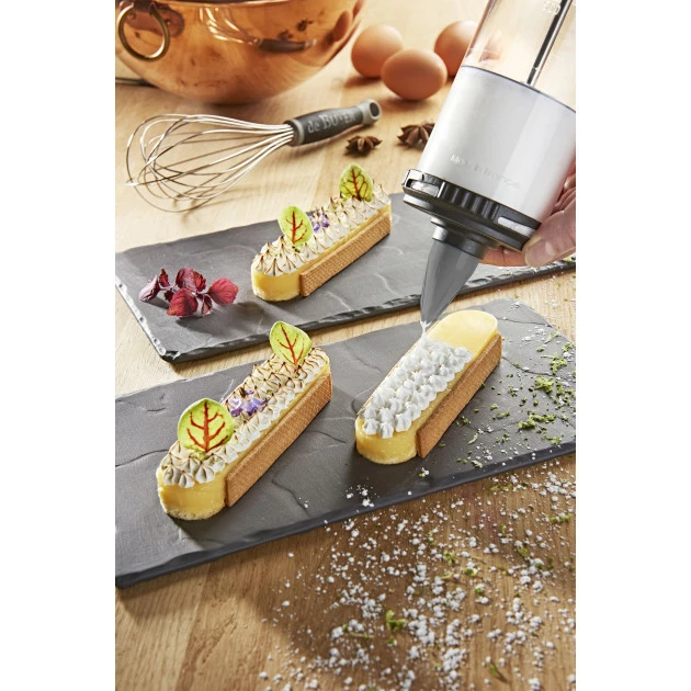 Que ce soit pour garnir ou pour décorer, tout est possible avec Le Tube De Buyer puisque ce sont pas moins de 12 douilles en tritan qui sont fournis avec leur support de rangement. Fabriqué en France ce Piston à Pâtisserie Professionnel est très pratique au quotidien et vous apportera précision et rapidité au moment de remplir des verrines, de pocher des choux ou de garnir des éclairs.