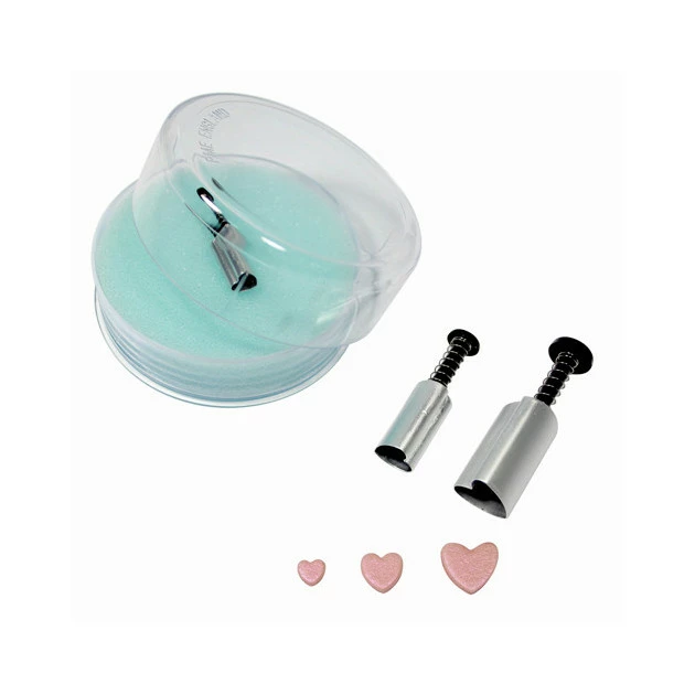 Jeu de 3 Découpoirs en forme de Coeur avec système d’éjection (piston) des pièces réalisées.