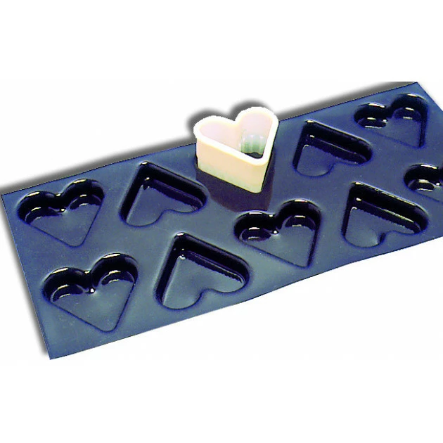 Découpoir en forme de Coeur cannelé pour la découpe de petits sablés ou de fonds utilisables notamment dans les plaques Flexipan (dimension des empreintes 5,3 x 4,8 cm).