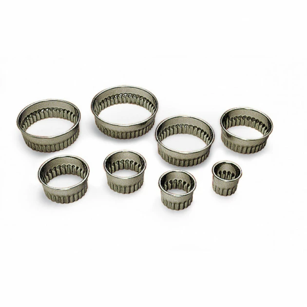 Cuisineaddict vous propose des emporte-pièces (découpoirs) ronds cannelés en inox. Ils vont vous permettre de découper de la pâte en cercle de manière régulière et précise. Les emportes-pièces ronds cannelés peuvent être utilisés par exemple pour découper des fonds de tartes et de quiches.