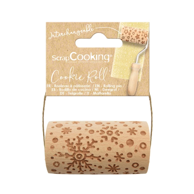 Pour tous les amoureux de l’hiver et de la neige, Scrapcooking vous offre le moyen de décorer vos biscuits et gâteaux de motifs hivernaux. En effet, le rouleau à empreinte flocon est gravé de délicats flocons de neige qui auront une allure splendide sur vos créations. Composé de bois de hêtre et adapté au contact alimentaire, le mini-rouleau à pâtisserie se manipule avec aisance grâce à son manche en bois.