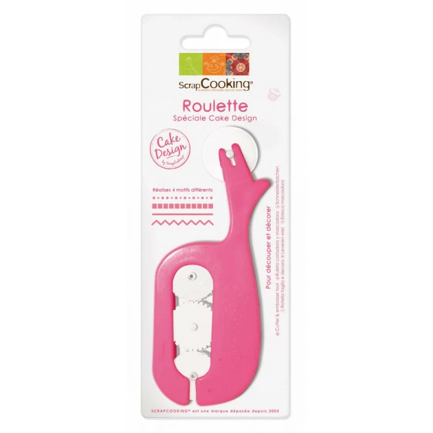 Les 4 roulettes possèdent une forme différentes : lisse, 2 sortes de pointillés et dentée. Avec la Roulette pour Pâte à Sucre Scrapcooking, vous pourrez vous lancer dans le cake design en toute simplicité.